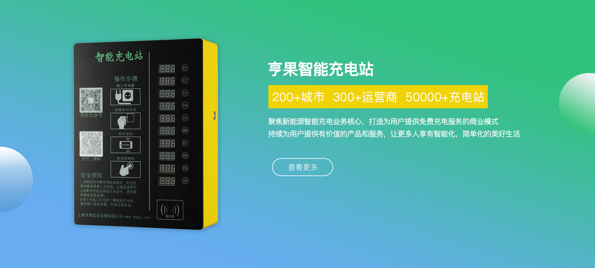 公司總部位于上海市青浦區(qū)趙巷新城經濟開發(fā)區(qū),專注于新能源智能充電操作系統(tǒng)、智能電動車充電樁、充電樁行業(yè)運營管理平臺等多類相關 產品的研發(fā)、設計、銷售和運營,產品現已廣泛應用于國內各城市居民社區(qū)、高校、及商業(yè)綜合體車輛聚集區(qū)域及市政配套領域。